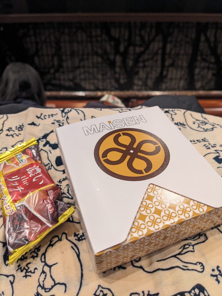 演舞場だと、いつもは演むすびを買うが、今日を乗り切る幕間飯は、これはまい泉のかつサンドしかないでしょうと京王ストアに寄ってわざわざ買ってから行く。量も味わいもちょうどいい。バッチリでした。口直しに、ブラックサンダーの「濃い the リッチ」。おいしかったけど、くどいほどの甘さがブラックサンダーだと思っている私には、こういう大人味は少し物足りない。ひとつ残念だったのは、チラシの配布が終わっていたこと。あんなに面白い舞台だったのに、仮チラシしか持ってないのが残念だなー(ほんのりチラシ収集家なので)。