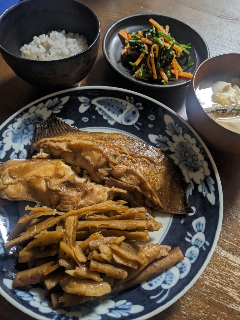 今日は日本酒が沢山残っているので、もう豪勢に、酒だけで下煮して(生姜は入れている)、味醂と醤油を加えて煮た。細いごぼうを2本、すりこぎで叩いてから入れたが、入れすぎたかなと思いつつ2本全部入れたけど、全然入れすぎじゃなかった。ラクしたいので煮魚の付け合わせはねぎを使いがちだけど、やっぱりごぼうが一番好きだな。煮魚は簡単な料理だけど、正直数えるほどしか作っていないので、やはりおっかなびっくりで作る。もう少し手慣れた感じで作りたいが、醤油の量を考えると、やはり煮魚はそんなに頻繁に作れる料理でもないなぁと思ったりもした。