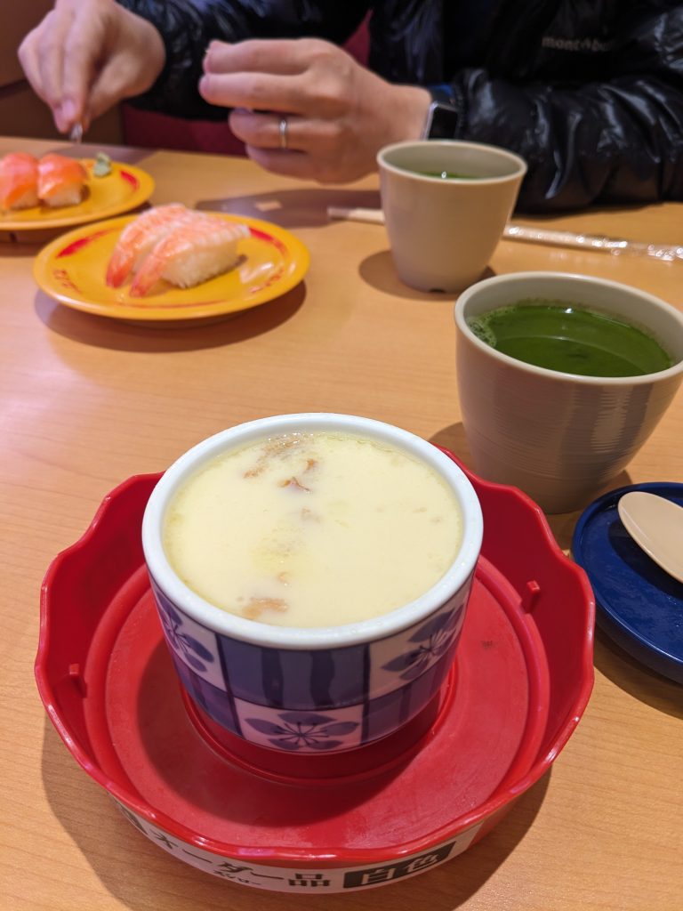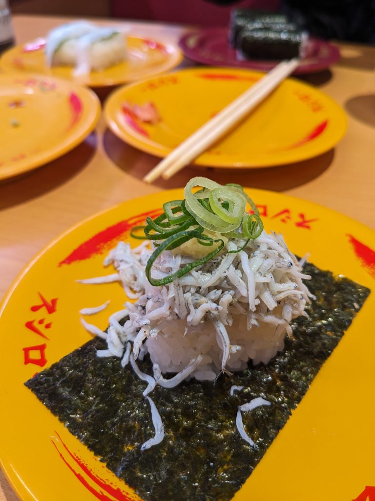 茶碗蒸しをお腹に入れたら、なんかひとつつまみたくなって、しらす巻き。しらすたっぷりでナイス。夫はいつも通り、海老、サーモン、えんがわ、鉄火巻。スシローはいつからか、巻物が6切れではなく4切れになってしまったと、夫は悲しそうだった。