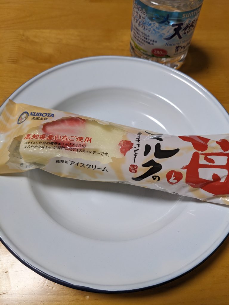 晩ご飯を食べた後、沢山買い置きしているポテチをつまみつつ、録画を消化する。早寝早起きの習慣がある夫は22時前に寝てしまい、私は台所でがさごそやってから、久しぶりにアイスを食べた。最近、これ凄く気に入っている。半割の苺が2切れ入っているというミルク味のアイスバーなんだけど、こってり練乳味で、それと苺のさっぱり感との相性が抜群で凄く好きな味。