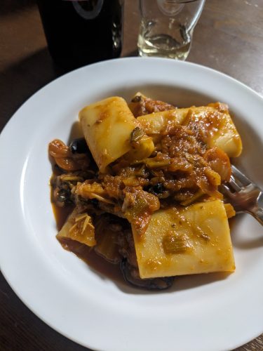 トマト煮でパッケリ