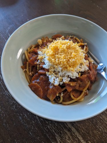 トマト煮でスパゲットーニ
