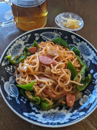 昨日買った、4個で280円のピーマンを使ってソフト麺のナポリタンを作る。ナポリタンにはピーマンは必須だと思っているが、最近なかなか見ないので作る機会を逸していた。お昼前にちょっと外に出ていて、シンクに洗い物がたまっているし、それを片付けてから改めて昼作るのも面倒だから、スーパーで弁当買うか、カップ麺買うか、それとも冷凍庫の冷食チンするか、色々考えたけど、結局手ぶらで帰ってしまう。洗い物して、その時作るの面倒やなーと思ったら、冷食チンでいこ、と思ったけど、洗い物が案外大したことなかったので、その勢いでナポ作ってサクッと食べた。難しいことはなんにもないけど、せっかくのピーマンに火を通しすぎるとがっかりなのでそこだけ注意したが、満足のでき。ピーマンのほろ苦さがナポリタンの大事なアクセントなのだと改めて思う。ソフト麺だからのびても、冷めても大事ないので、食べる前にあらかた片付けてしまって台所もまあまあきれいなので、食後にカフェオレ入れてチョコも食べた。そういえば、最近やたらトマト味を食べたがりすぎじゃない、とふと思う。当初食べる予定だった冷食もケチャップライス入りのオムライスだったし。