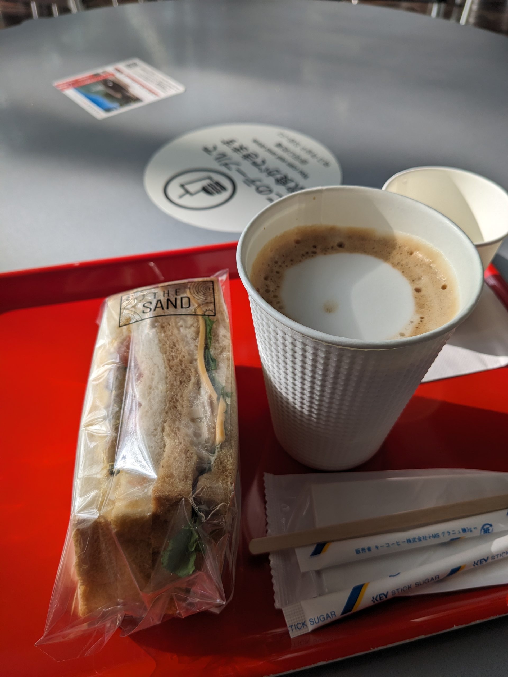 国立新美術館の売店で郷土玩具の展示販売をしていると知り平日を狙って出かける。ここは地下に軽食オンリーのカフェ、1階にパックのサンドイッチと市販の焼き菓子やアイスを売るイートインスペース、2階に平松がやっているレストランがあって、どうせバカ高いだけの軽食にお金を出すのはなぁと思って、昼食は六本木駅周辺のチェーン店で軽く済ませようと思っていたけど、よく考えたら景色もご馳走だなと思い直して、イートインでサンドイッチとカフェオレ。600円と610円。高いか安いかと言われれば高いんだけど、建物の内部をゆっくり堪能できるのは最高に良い。よく見ると案外あちこちにカメコがちらほらいてて、確かにこの建物かっこいいもんなと思う。ひとつ難点は、ここは席の半分が午後からケタ違いに日当たりが良すぎて直射日光直撃ということ。なお、日の当たらない席(良席)はマダム軍団が押さえていて空く気配はない。あと、サンドイッチの製造元が三桂だったのも、わたし的にはポイントが高い。次回の企画展が面白そうなので行くつもりなのだが、今度は直射日光の当たらない席をゲットしてゆっくりしたい。
