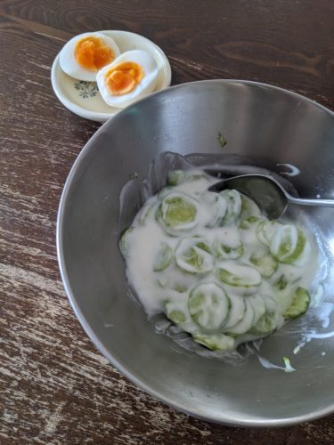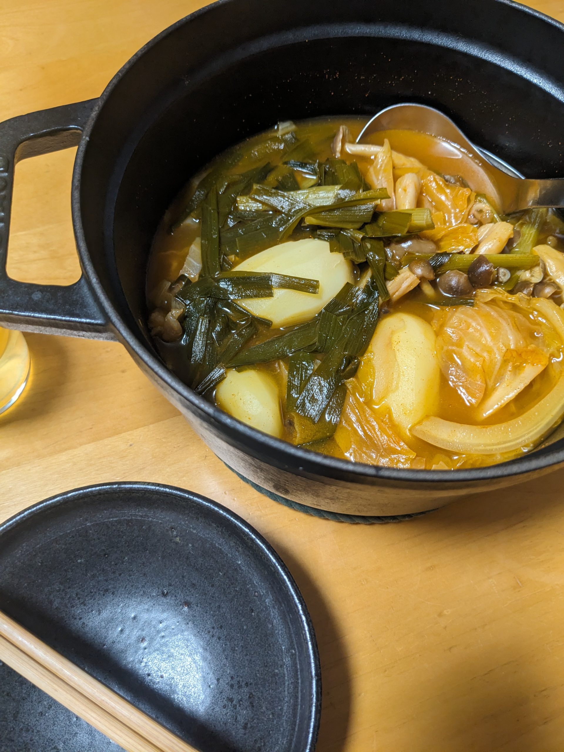 動かない内臓を動かすために、晩ご飯は、温かく、消化の良さそうなものを食べようと、あさりと豆腐の汁を作る。最初は単純に味噌汁にしようと思っていたけど、まだチョングッチャンが残っているのに気づいて、そっちに変更。簡単に言うと納豆汁で、粘りはないけど、臭いはかなり強い。多分、納豆の嫌いな人は発狂すると思う。日本のものより強いからか、韓国でも苦手にしている人も一定数いるらしい。私は好きだけど。アルミ鍋に、冷凍あさりひとつかみ、水、チョングッチャンを入れて加熱。あさりの口が開いたら取り出して豆腐を入れ沸いたら玉子を落としてざく切りのホワイトセロリを乗せて蓋して玉子が固まるまで加熱する。思わず買ってしまったとうもろこしは、皮1枚残した状態で蒸し器で10分、放置10分。もんのすごく甘い。やっぱり夏のとうもろこしは最高だな。