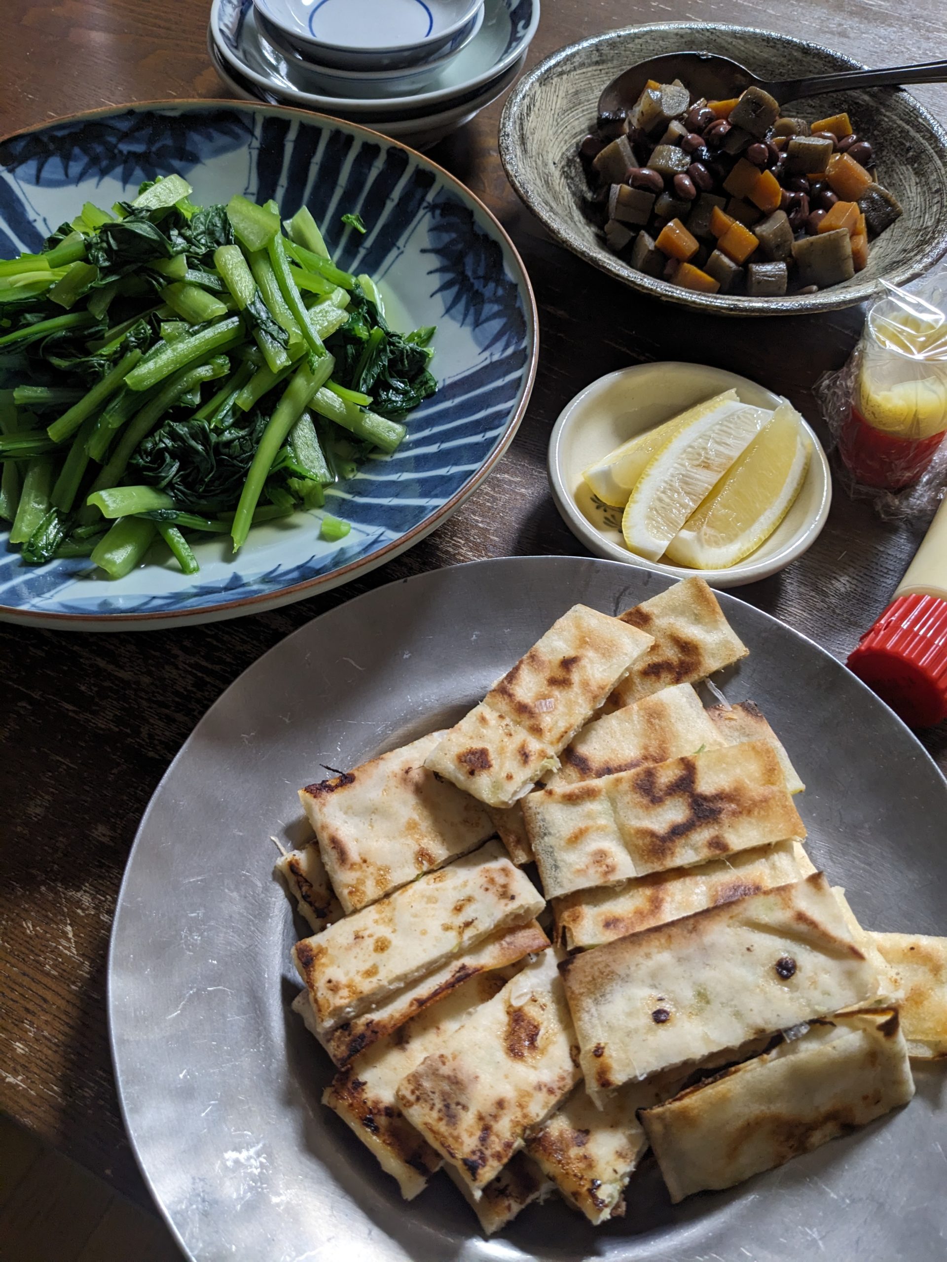 晩ご飯はまだ材料が残っていた鶏ひき肉の焼き春巻きをメインに、小松菜の塩茹で、作り置きの五目豆。小松菜は長谷川あかりさんのレシピだが、やっぱり長谷川さんの料理は若い人のレシピだなと思った。年齢が20近く違うと食べ物に求めるものはだいぶ違うんだなと改めて思った。