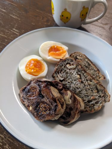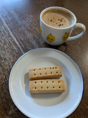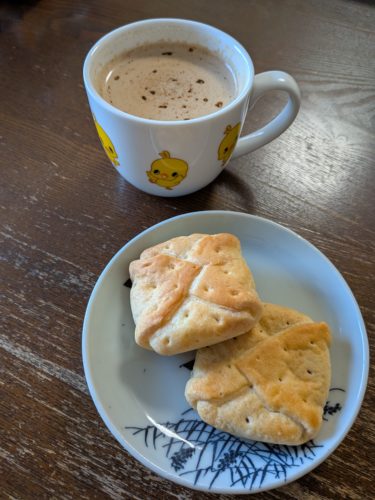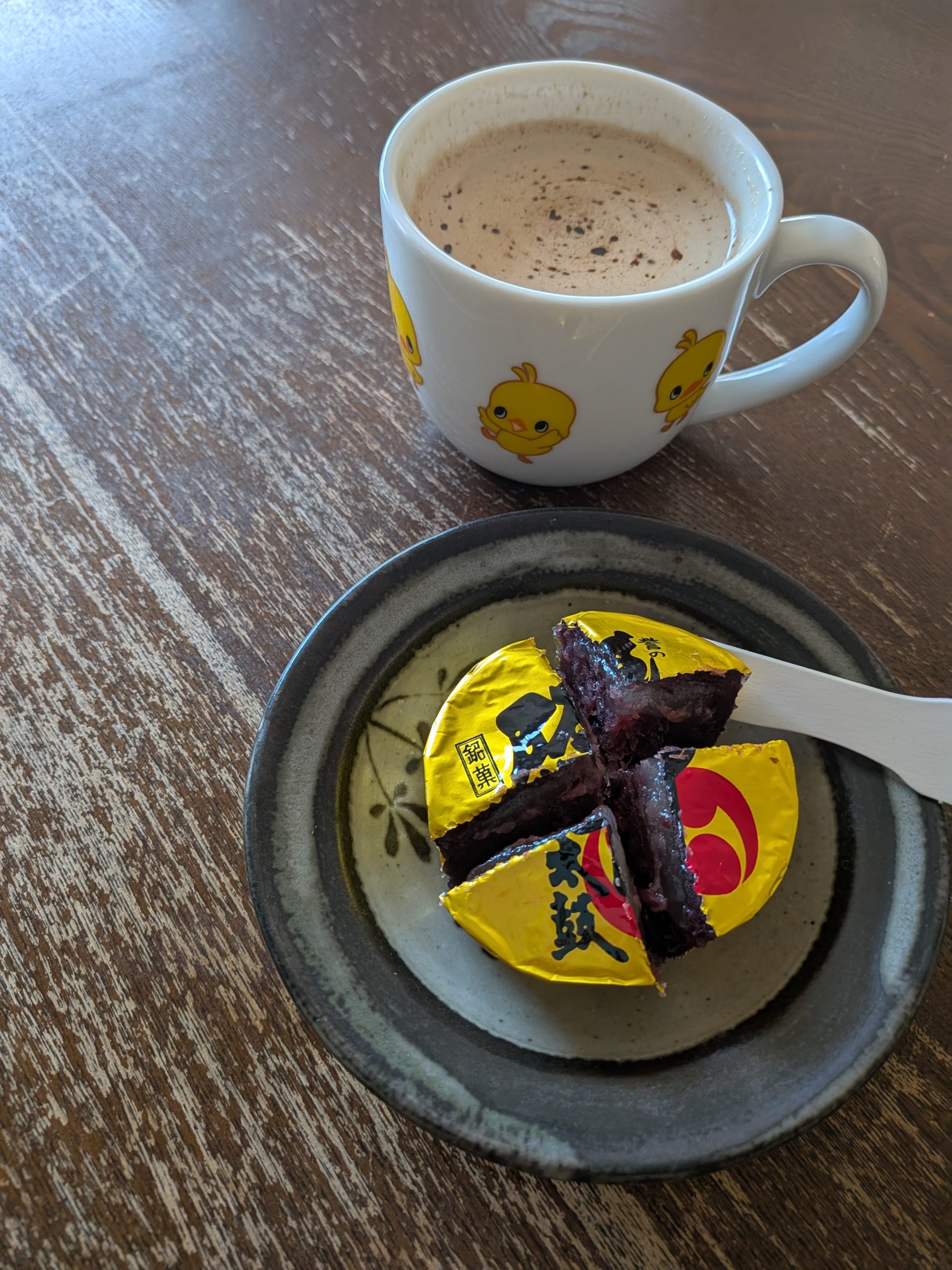 熊本で買ってきた武者がえしを朝ごはんに。私は地方銘菓になっているあんこパイ包み菓子が好きで見かけるたびに買うのだけど、武者がえしはいつもタイミングが悪くて手に入れられなかったので、今回入手できて嬉しい。買ったのは鶴屋百貨店内のおかしの香梅で、店員さんの対応がとても感じが良かったので既に印象がいいのだが、実際食べてもかなりおいしかった。これまで食べてきたあんパイに比べるとバター感が少ないのだが、それが和菓子寄りな感じで味としてはまとまっていておいしい。福岡の大丸に売っているのは知っているので、今度はそこで買うことにしようと思った。