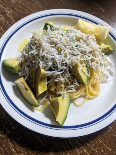 昨日本屋で雑誌を立ち読み知っている時に目に止まったパスタ料理を真似っこ。雑誌ではバジルペーストで和えた麺に、アボカドとしらすを乗せていて直前までそれでやる気満々だったけど、急にちょっとくどいかなと思い直してバジルペーストはカットして作る。その代わりオリーブオイルを回しかけてレモンを絞り、しょうゆをちょろり。こんなの絶対おいしいよね。いい機会だから冷蔵庫の掃除をしているんだけど、思いの外モノがあってなかなか整理しきれない。ただ、私はこれらが無駄なものとは全く思っていなくて、毎日何かしら作って食べるを繰り返していればこれくらいの調味料、保存食になるのは仕方ないと思っている。夫のように毎日同じものを食べ続けられるタイプでもないので、あんまりスッキリさせてしまうと、半期製品が多くなるような気がするし、外食が増えそう。ただ、カリカリ梅と山椒の醤油漬けとにんにくの醤油漬けとはちみつは何とかして食べきりたい。