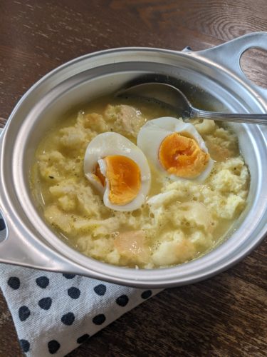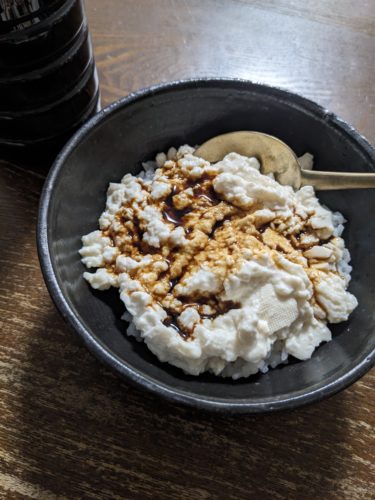ようやくなんか食べてもいいかなと言う気分になってきたので、チンご飯に豆腐半丁乗せて甘しょうゆ。うまい。でも食べ終わったら少し胃が重い。