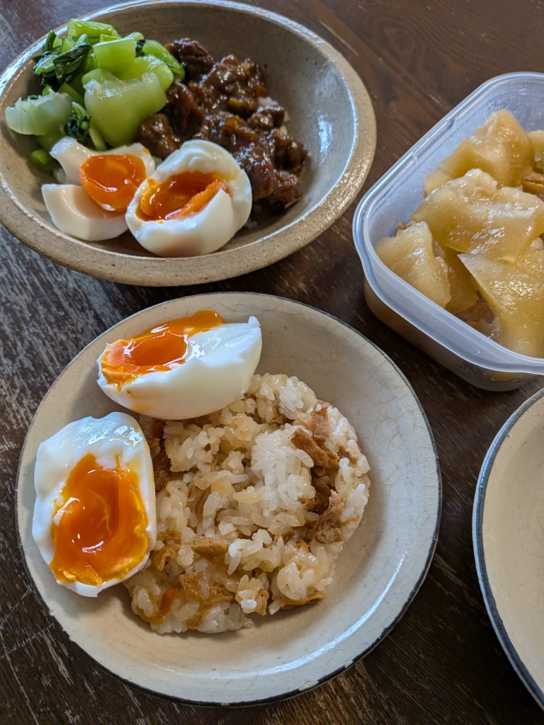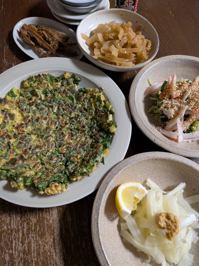 まだ残っている冬瓜のきんぴら、作っておいて出す機会がなかった干ししいたけの煮物も出す。干ししいたけの煮物は、こってり味を付けすぎてちょっとしか食べられないけど、しばらく冷蔵庫に置いておけるので、結果的に良かったかもしれない。
