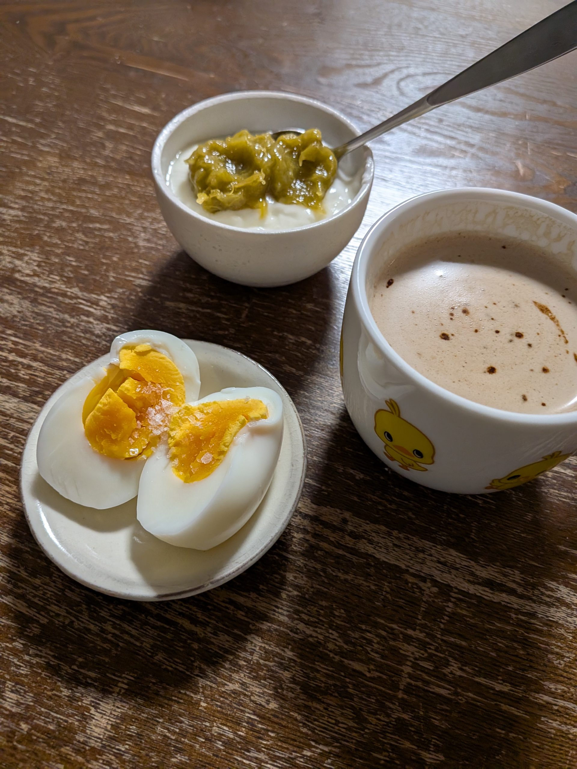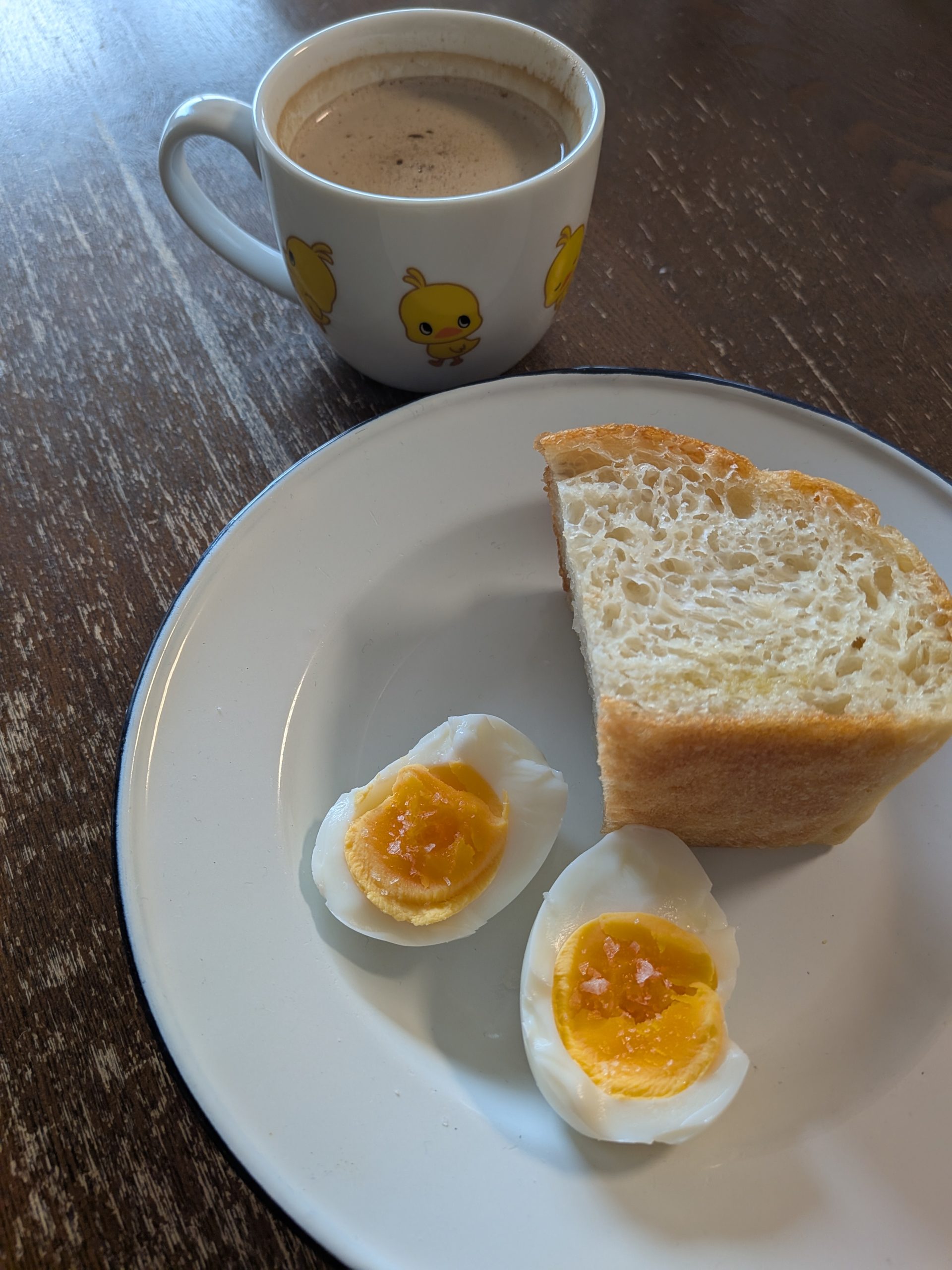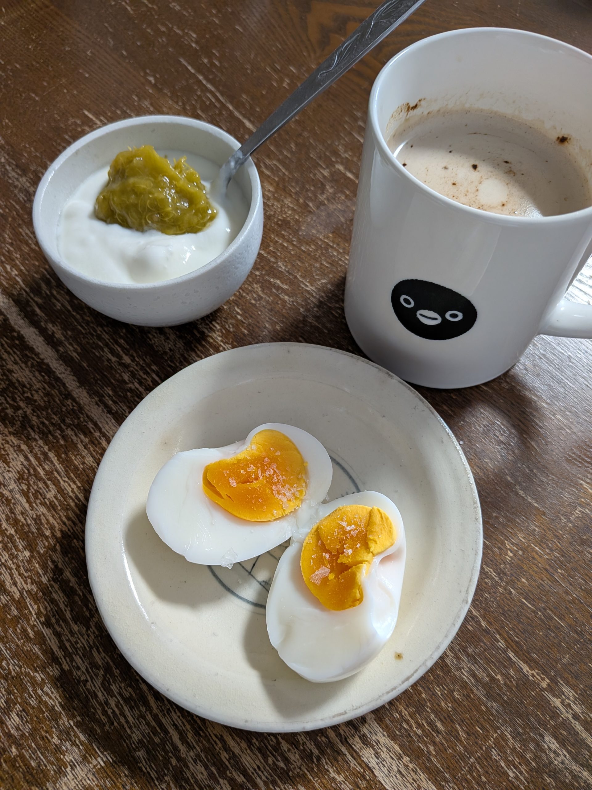 オートミール粥とゆで玉子に加えて、にんじんポタージュの素と青のり入りクネッケ。ビスケット1枚とっても、自分で作るとあーでもないこーでもないと改善点がいくつも出てくる。今日のは柔らかい乾パンみたいな出来で、食べる人を選ぶ仕上がりだった。買ったほうが早いしおいしいのは分かっているが、それでも自分で作るのが好きなのはなぜなのか。