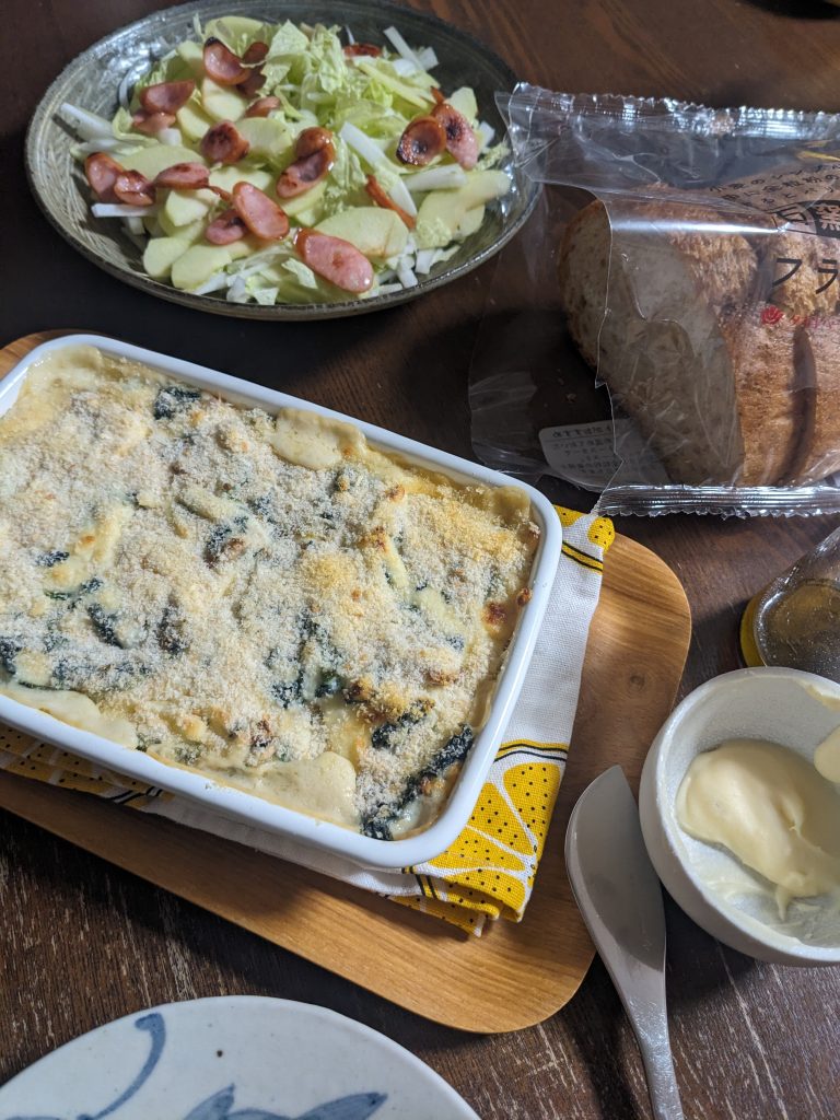和えるだけソースなのでパスタを茹でればいいだけなんだけど、1人分のパスタを茹でるのって案外面倒だなと思ってしまった。素麺だと一人分は小鍋でいけるが、パスタは1人でも2人でもお湯は1リットルいる。でもここは手を抜けないところなので仕方ない。普段なら食べる皿の中でソースを混ぜるけど、この黒さでそれをやるとなんか見た目があんまりな感じになりそうだなと思って、ちゃんとボウルで和えてから盛ったが正解だったと思う。すごい真っ黒。食べる前からこれは人前では食べられないやつだなと分かるし、実際、口の周りも中も真っ黒になった。味も美味しい。かなり魚醤でチートしているが、雰囲気はある。今度はサイゼリヤのイカスミパスタを食べてみようと思った。パスタに具が一切ないので、食後にりんごを添えたのは正解だった。今日のりんごはつがるという早生りんごで、もうちょいぼけだったけど、あまくておいしかった。調べたら、ゴールデンデリシャスと紅玉の掛け合わせだけど、酸味はゼロだったな。不思議だ。